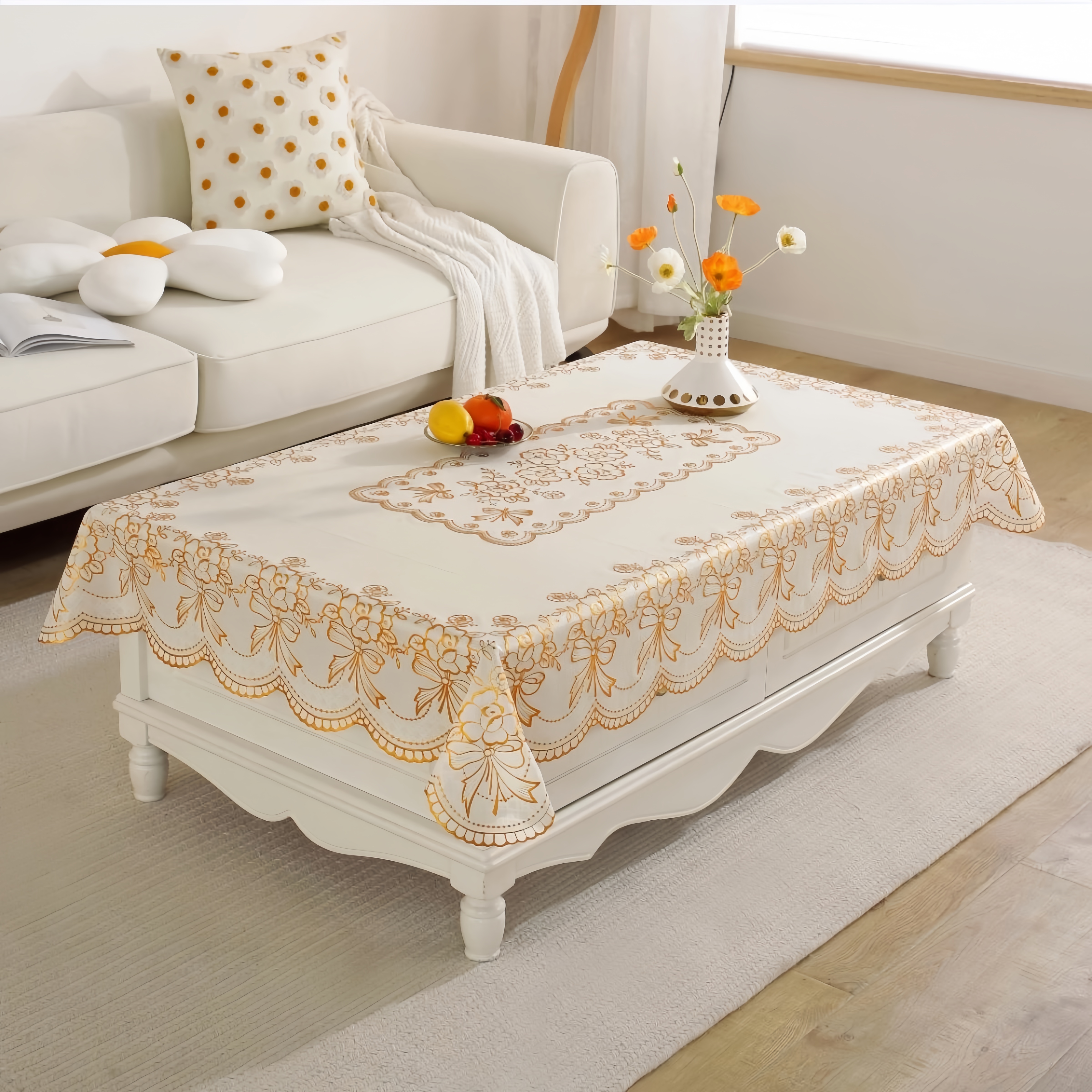 居家布艺 桌布防水防油免洗防烫长方形餐桌布茶几垫塑料台布套客厅烫金桌布