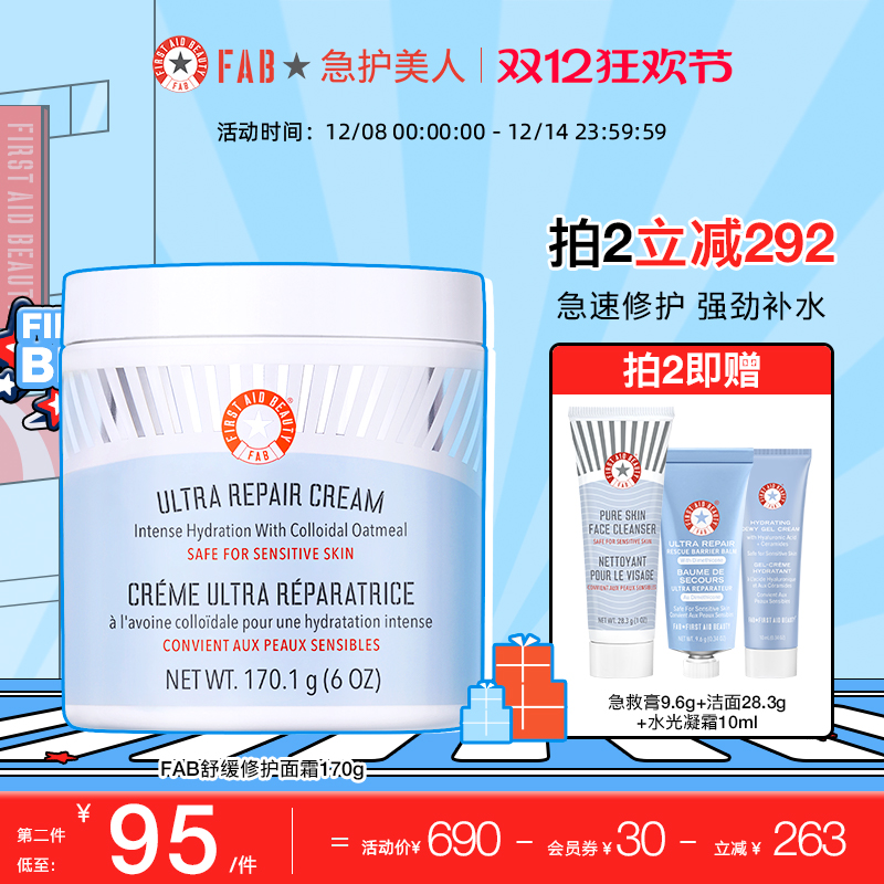 美容护肤/美体/精油 【第二件超值低价】FAB急护美人舒缓修护面霜179g滋润保湿b临期