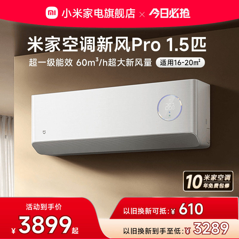大家电 小米米家空调 新风Pro1.5匹超一级能效冷暖卧室家用挂机变频智能