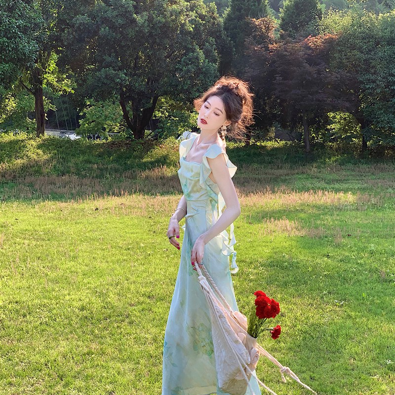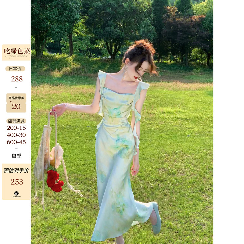 女装/女士精品 20元新品优惠券【玫瑰氧气】立体剪裁荡领设计感缎面连衣裙女夏季