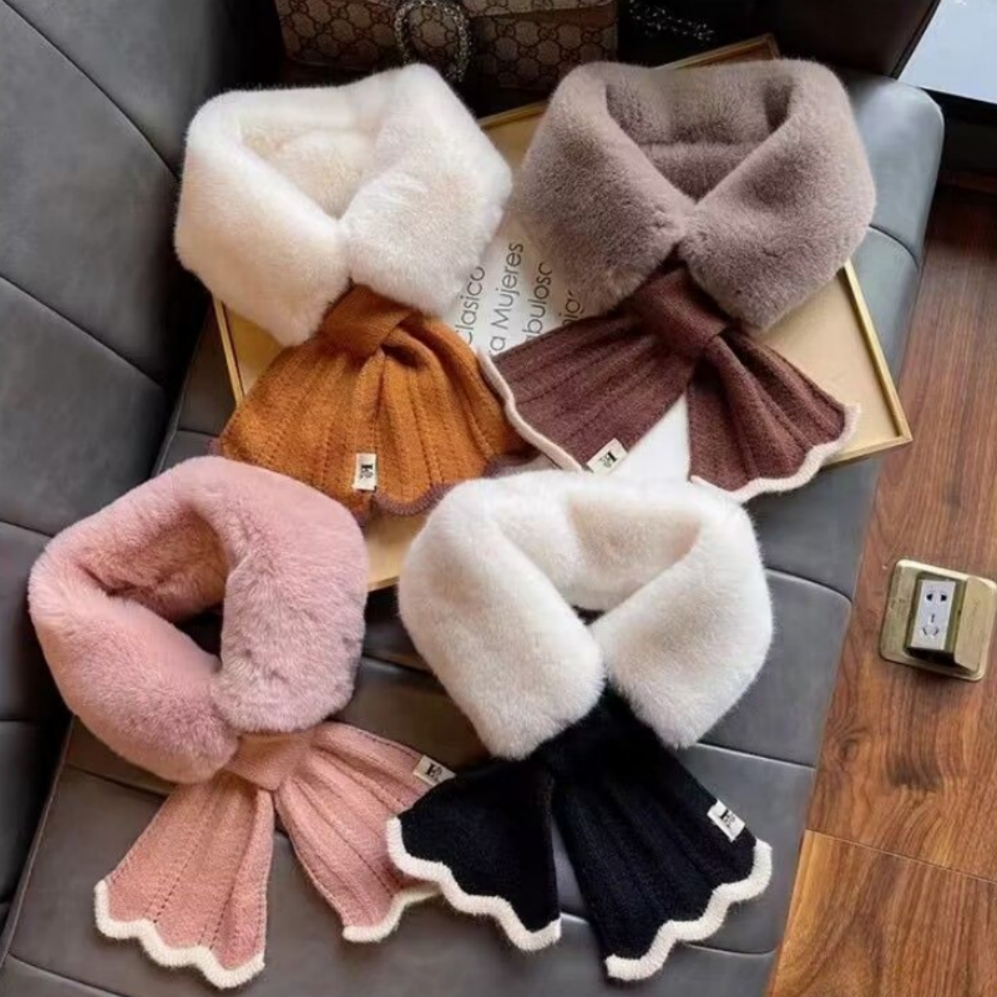 服饰配件/皮带/帽子/围巾 毛毛围脖女秋冬季百搭韩版加厚仿兔毛保暖针织毛绒脖套交叉毛领子
