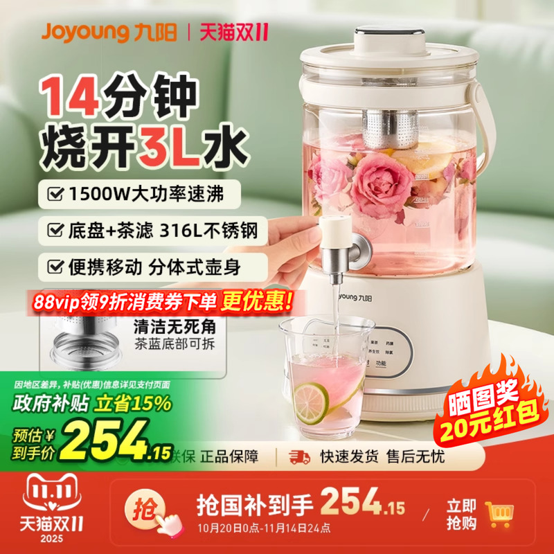 厨房电器 九阳养生壶多功能煮茶壶炖煮一体大容量2025新款水龙头恒温烧水壶