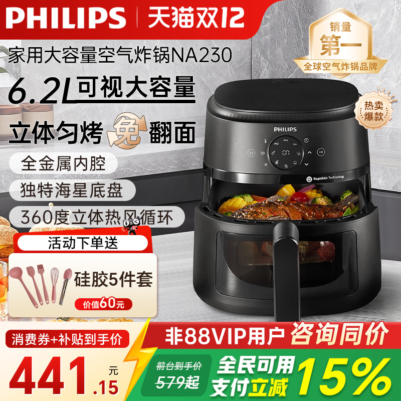 厨房电器 政府补贴飞利浦家用空气电炸锅新款官方全自动大容量旗舰店NA230