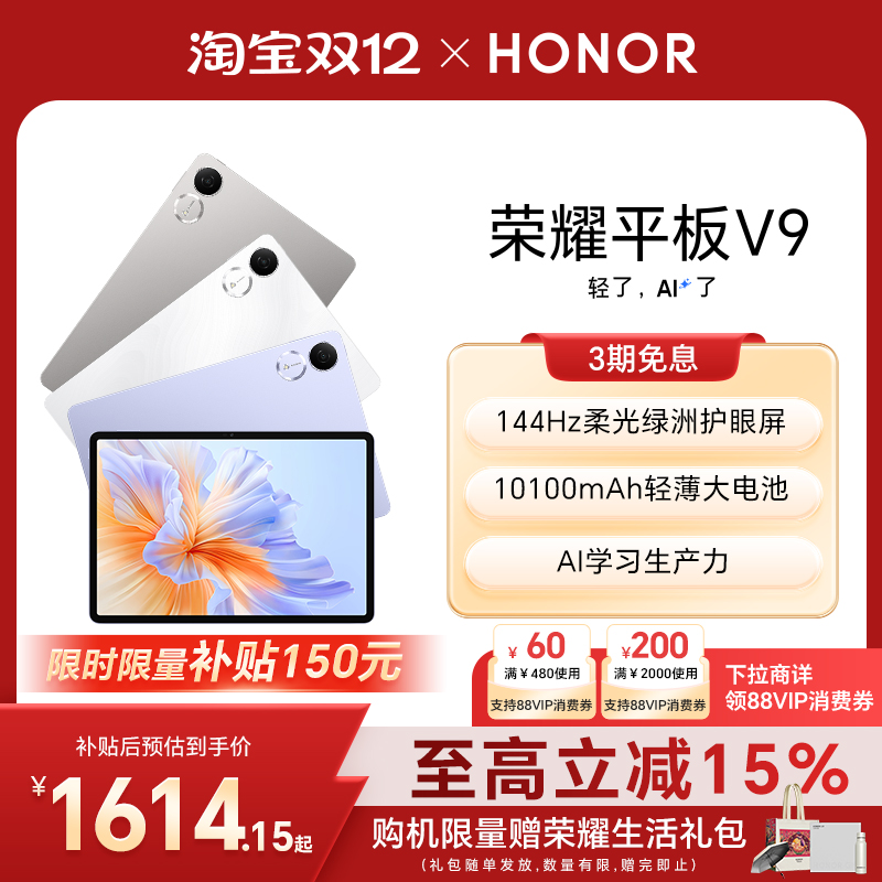 平板电脑/MID 【政府补贴15%】HONOR/荣耀平板V9 新品平板电脑 144Hz高刷屏 超轻薄长续航 学习机办公学生官网官方旗舰店