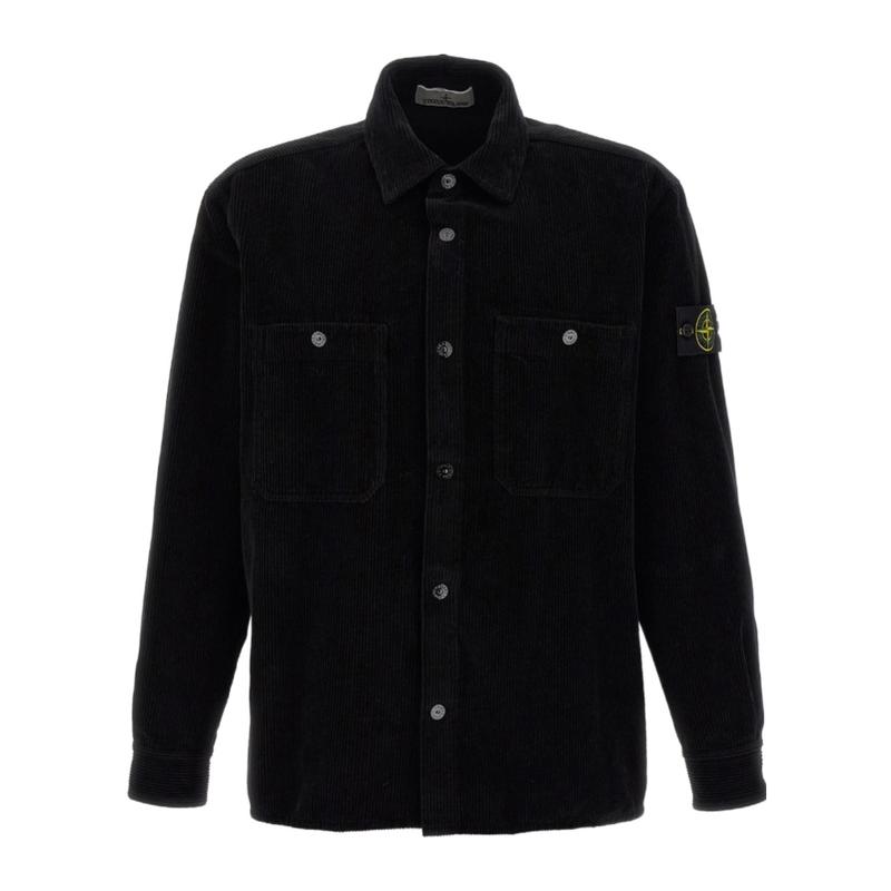 男装 STONE ISLAND男士夹克保暖耐用棉质黑色日常休闲衬衫潮流