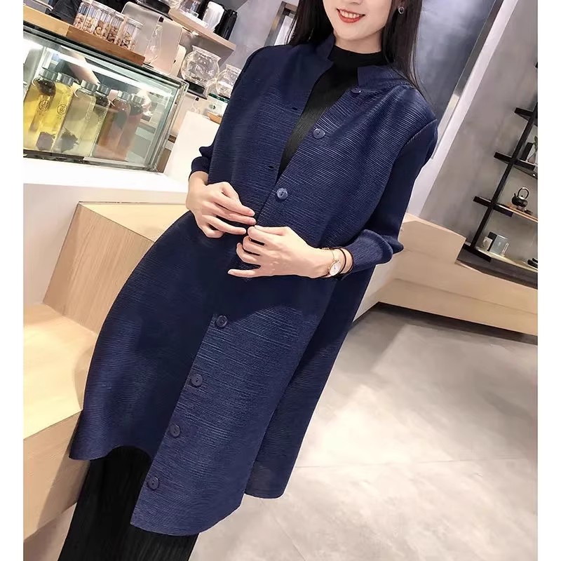 女装/女士精品 【海外代購】三宅褶皱女秋季立领风衣外套新款中袖中长款开衫上衣