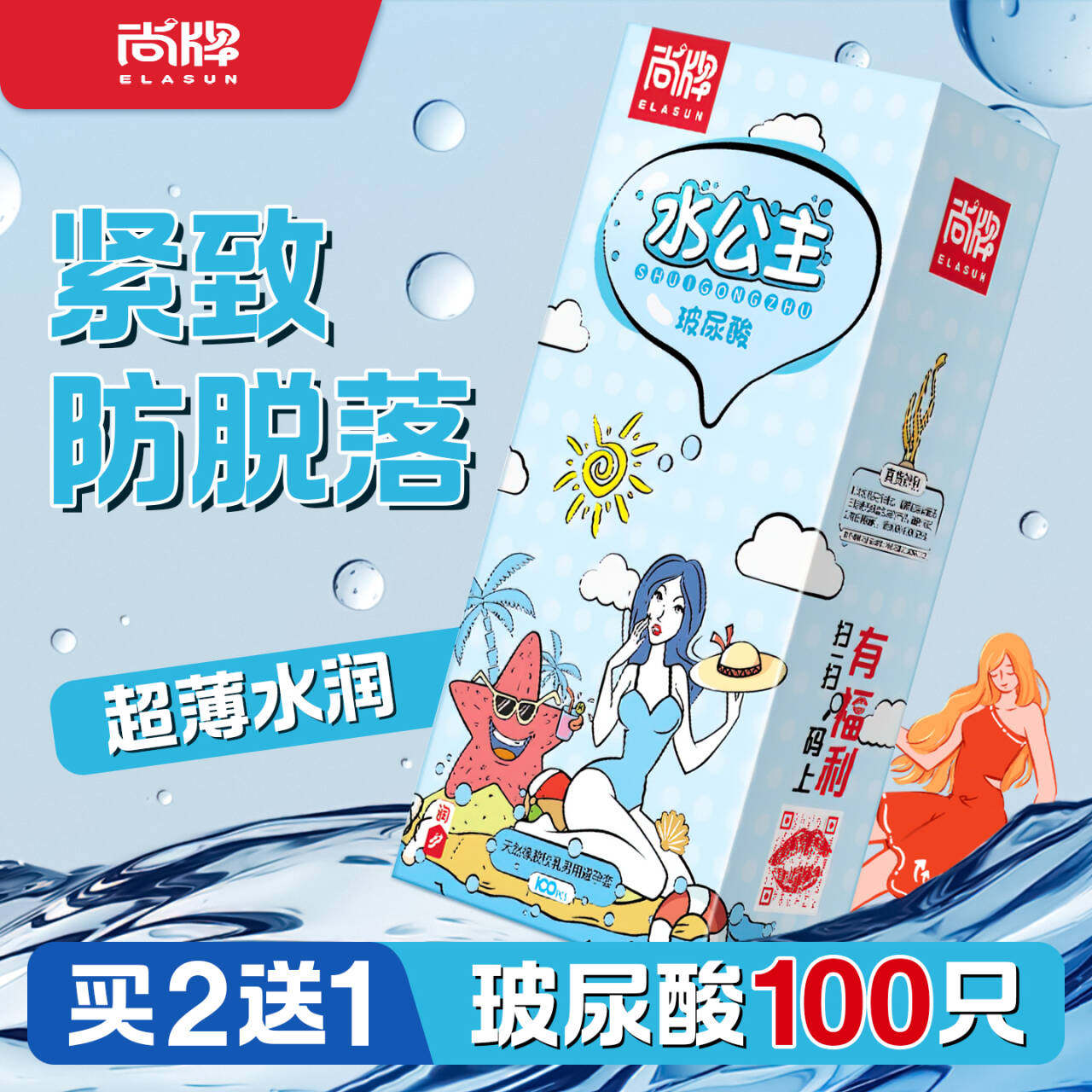 计生用品 正品尚牌水公主玻尿酸避孕套100只装超薄001免洗安全套套子男女用