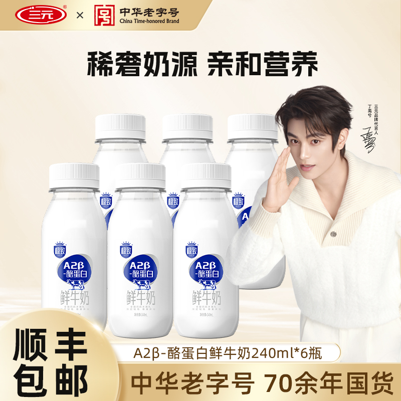咖啡/麦片/冲饮 [百亿补贴]三元A2β酪蛋白鲜牛奶240ml巴氏杀菌早餐奶低温生牛乳