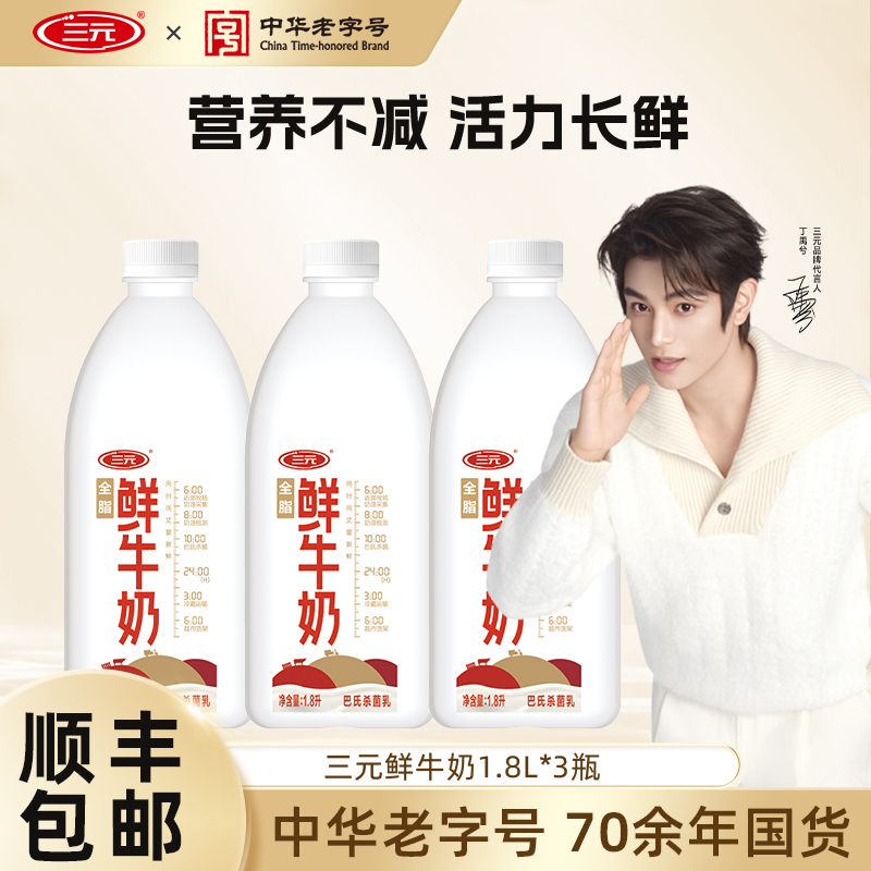 咖啡/麦片/冲饮 [百亿补贴]三元全脂鲜牛奶1.8L大桶家庭装巴氏杀菌早餐低温牛奶