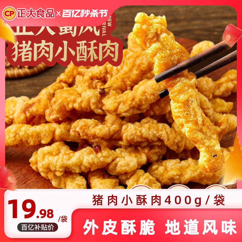 水产肉类/新鲜蔬果/熟食 【百亿补贴】正大猪肉小酥肉400g/袋加热即食半成品空气炸锅小食