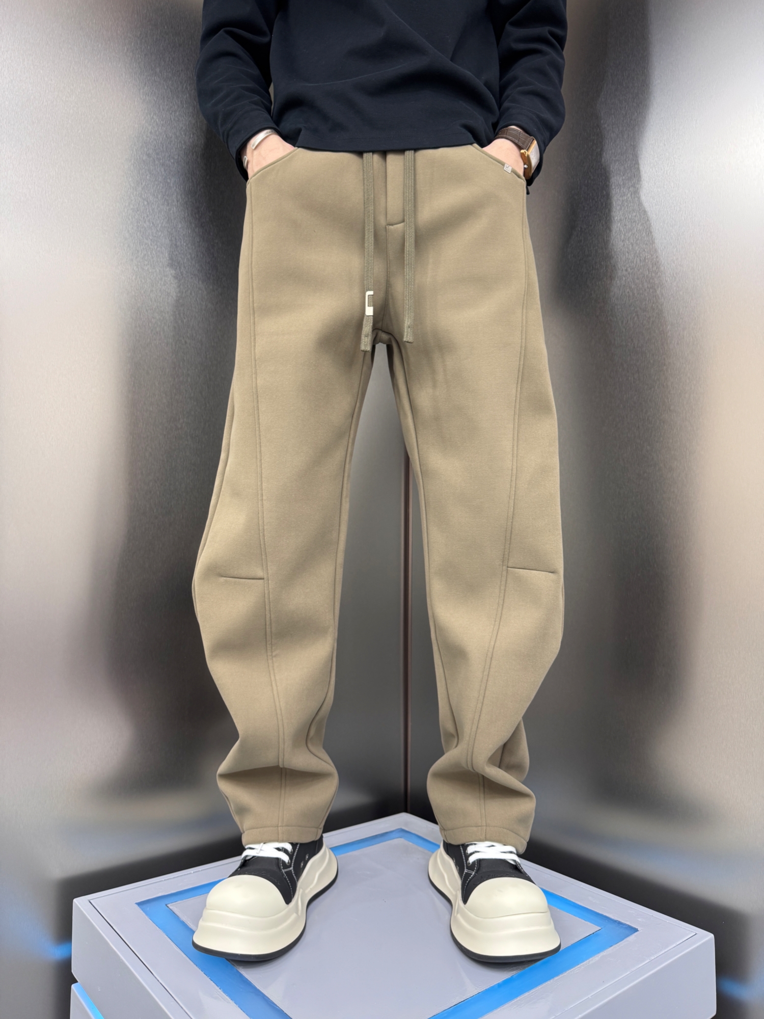 男装 2025秋冬加厚休闲裤宽松阔腿弯刀裤美式重磅保暖直筒运动加绒卫裤