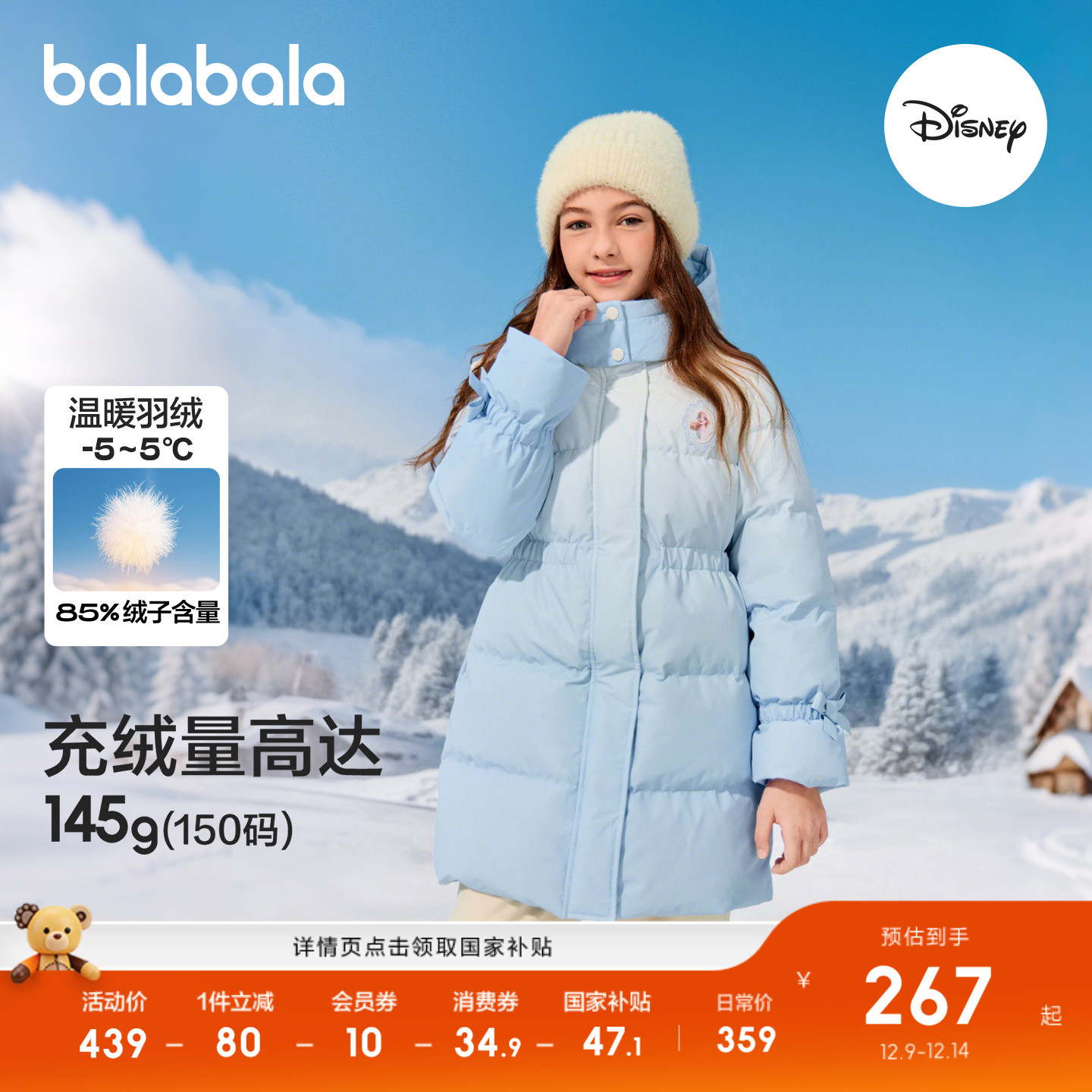 童装/婴儿装/亲子装 【迪士尼IP】巴拉巴拉童装女童羽绒服儿童外套2025冬装新保暖连帽