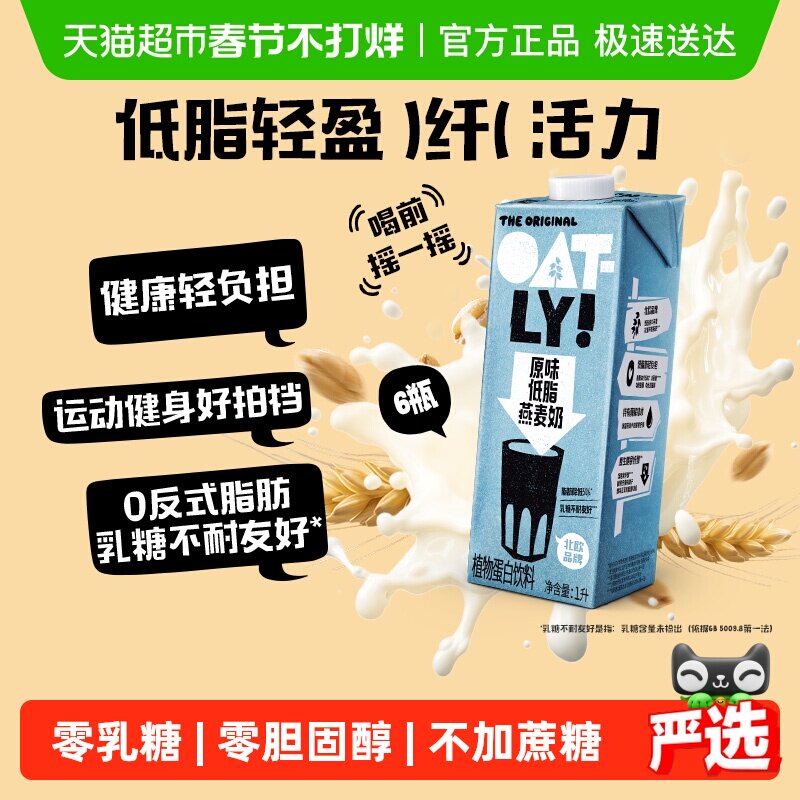 咖啡/麦片/冲饮 OATLY噢麦力原味低脂燕麦奶1L*6瓶植物蛋白饮料营养早餐奶0乳糖