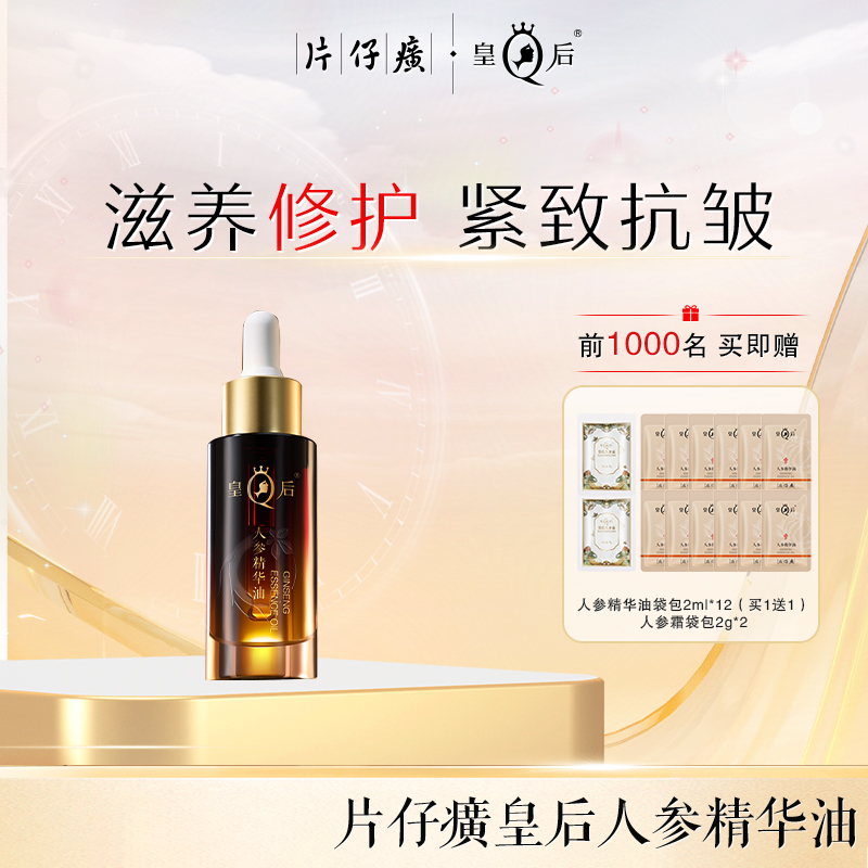 美容护肤/美体/精油 片仔癀皇后牌人参精华油紧致抗皱面部护肤油舒缓滋养修护化妆品