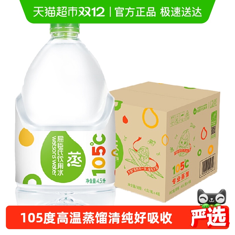 咖啡/麦片/冲饮 屈臣氏高温蒸馏饮用水大桶装整箱补水纯净敷脸护肤非矿泉泡茶泡奶
