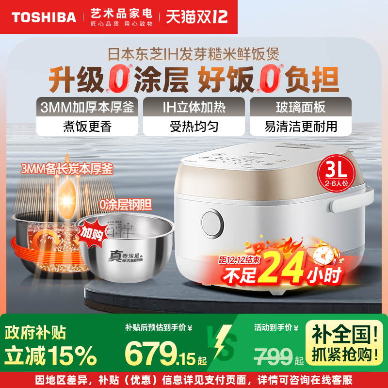 厨房电器 日本东芝IH电饭煲0涂层家用3L智能进口备长炭2-4人5-6小饭锅10HPC