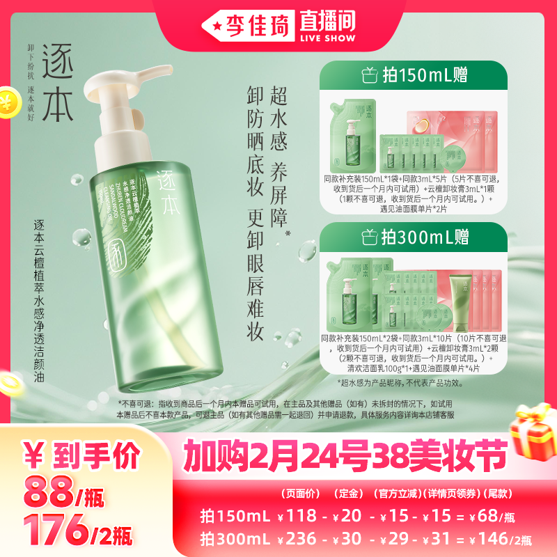 美容护肤/美体/精油 【加购2月24号李佳琦美妆节】逐本云檀植萃水感净透洁颜油卸妆油