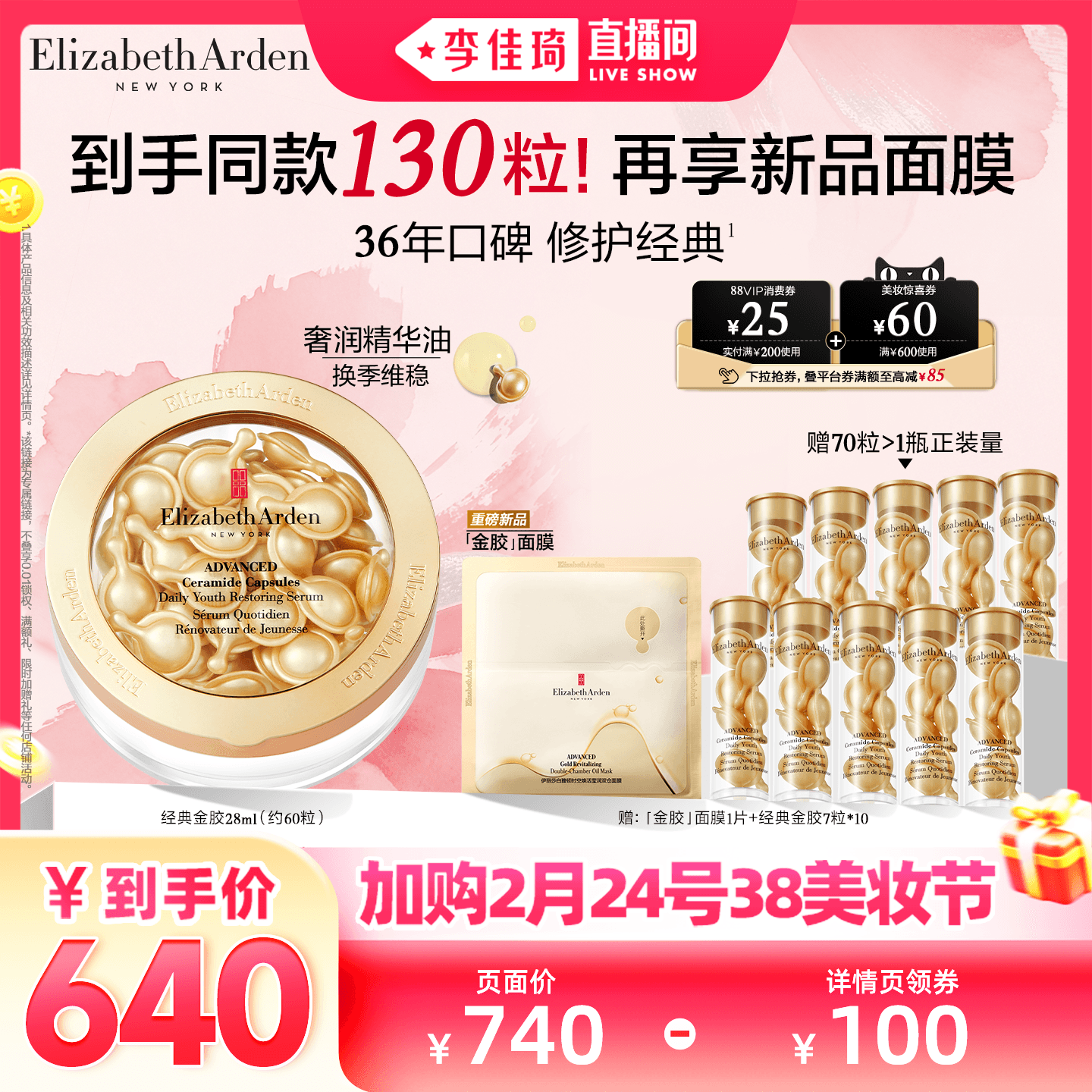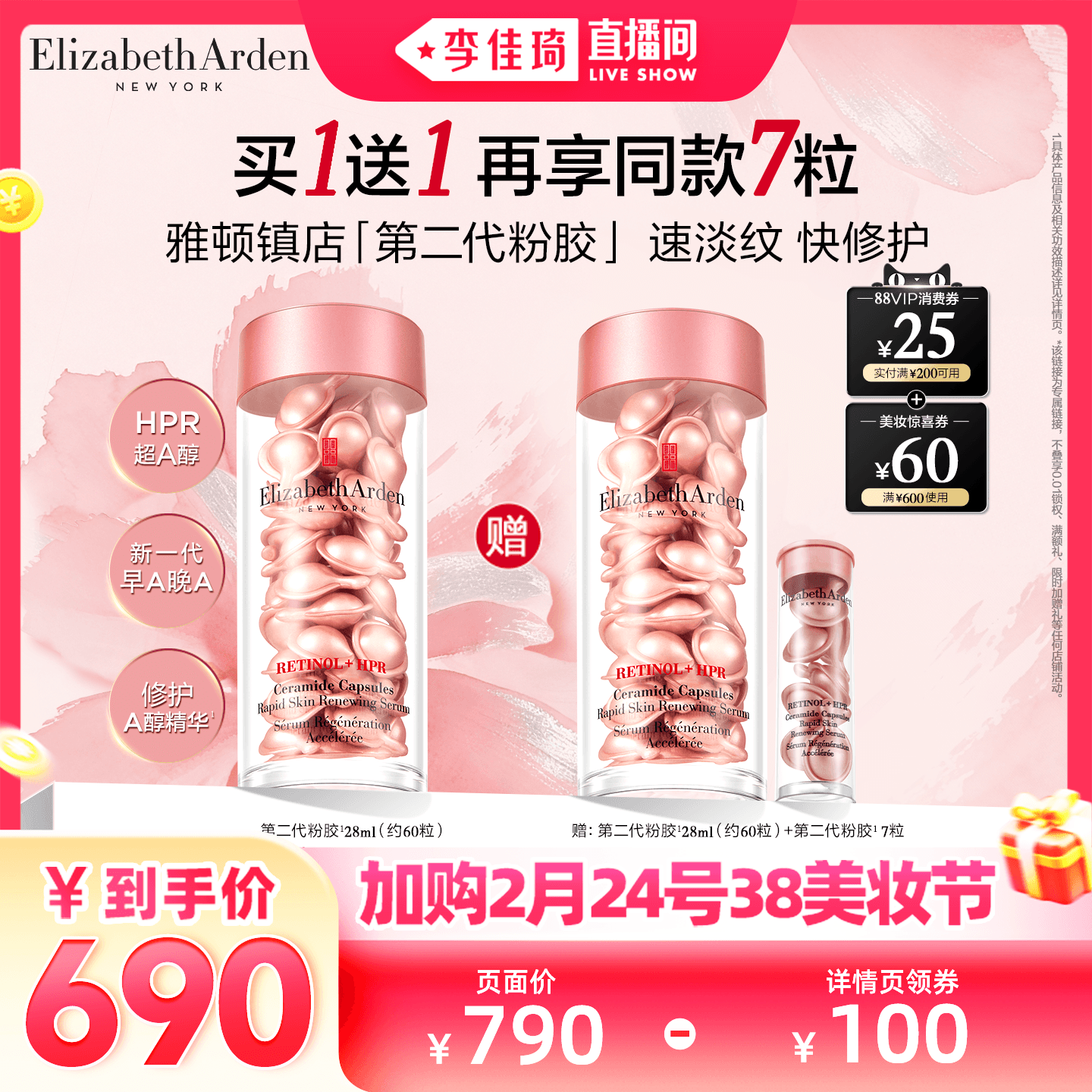 美容护肤/美体/精油 【加购2月24号李佳琦美妆节】雅顿第二代粉胶精华淡纹A醇抗皱胶囊