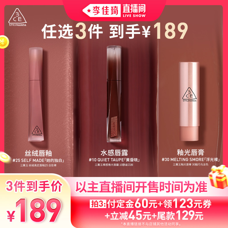 彩妆/香水/美妆工具 【加购2月24号李佳琦美妆节】3CE水感唇露丝绒唇釉好气色唇膏NH*