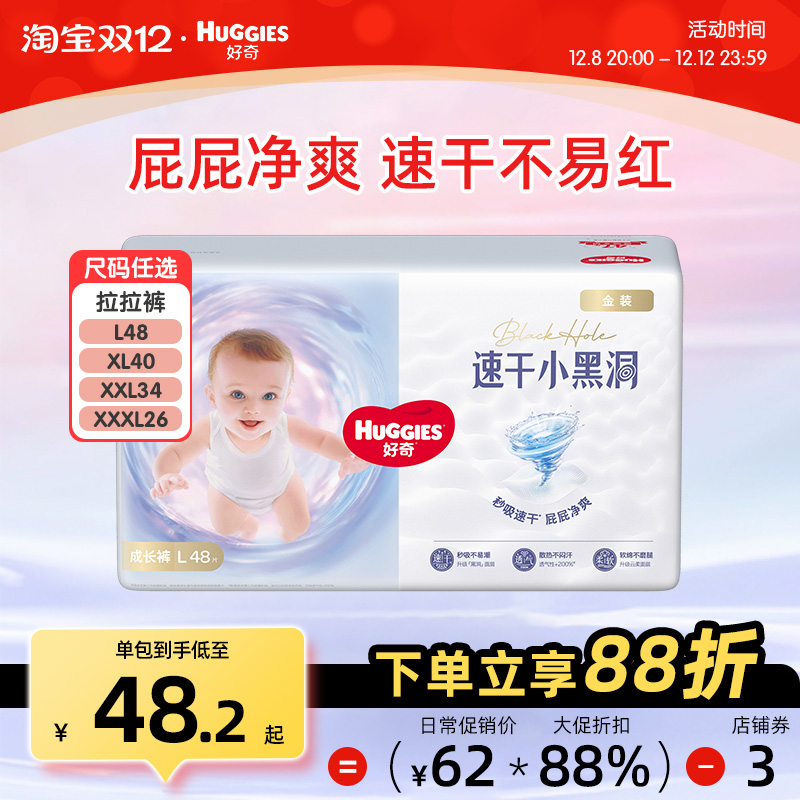 婴童尿裤 好奇金装薄透气婴儿拉拉裤L48/XL40/XXL34/XXXL26男女宝宝尿不湿
