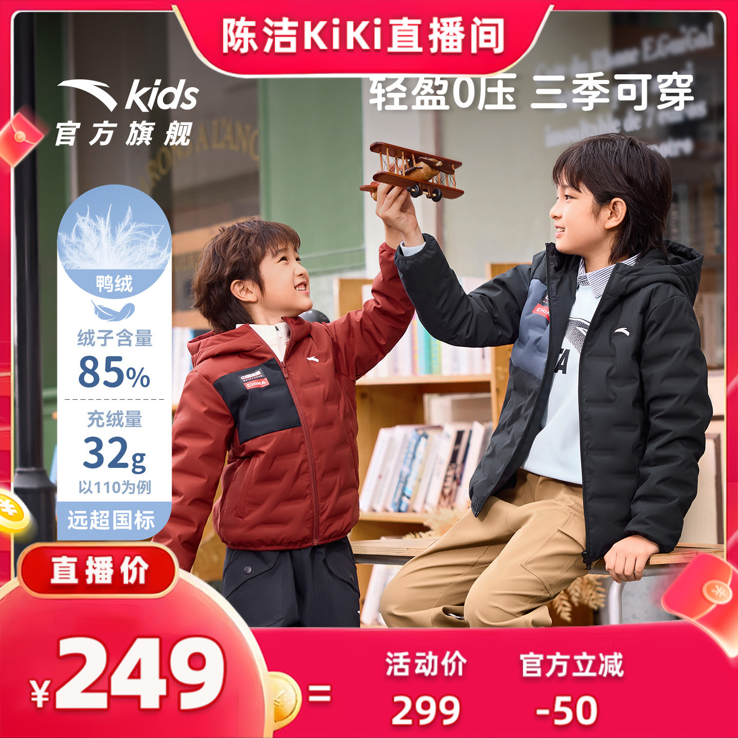 童装/婴儿装/亲子装 管道防钻绒-轻薄羽绒服安踏儿童2025冬季新款保暖连帽羽绒外套男