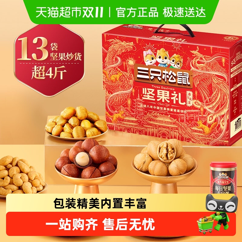 零食/坚果/特产 三只松鼠罐装坚果礼盒吉祥橙坚果炒货长辈节日送礼送长辈健康食品