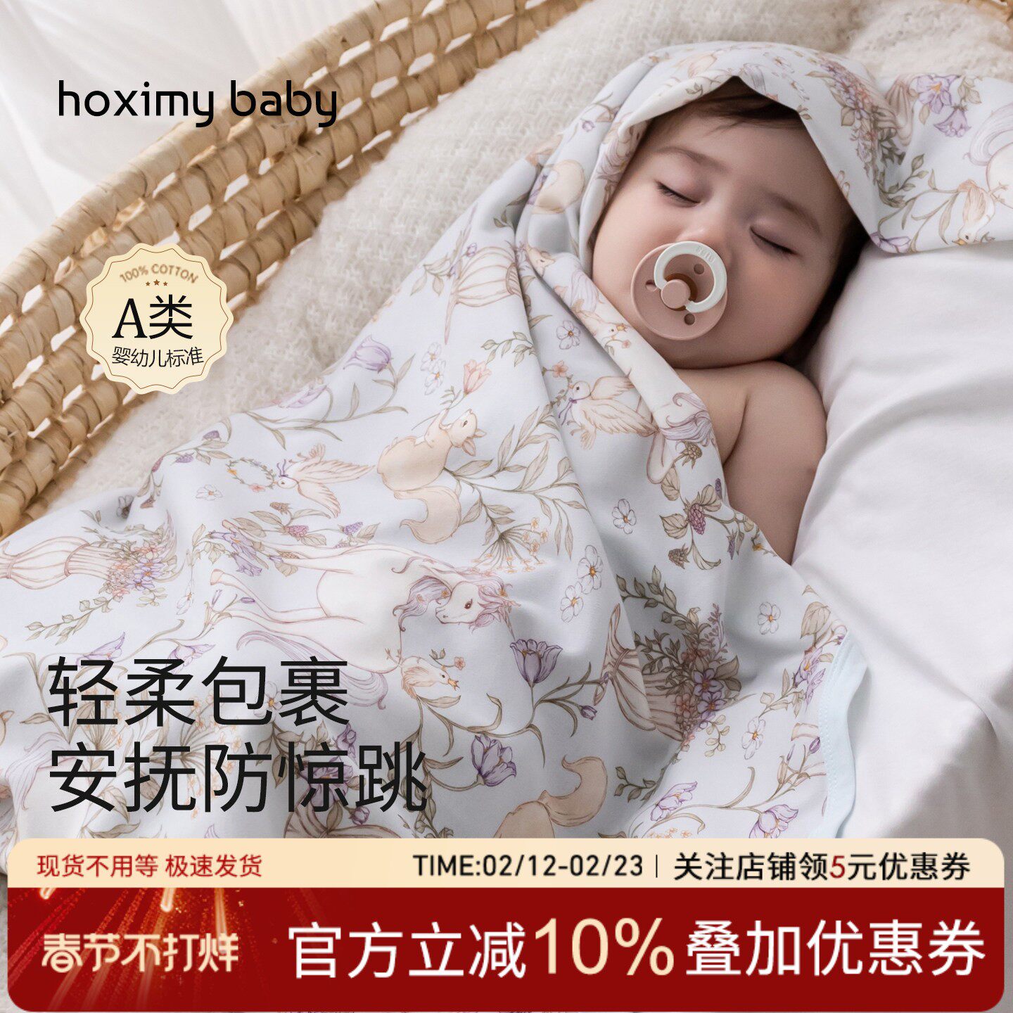 婴童用品 婴儿包单初生纯棉A类加厚双层盖毯秋冬产房用品新生婴幼儿包巾