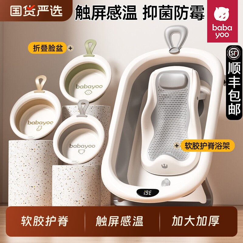 婴童用品 芭芭优婴儿洗澡盆宝宝浴盆大号浴桶折叠坐躺托浴架家用新生儿用品