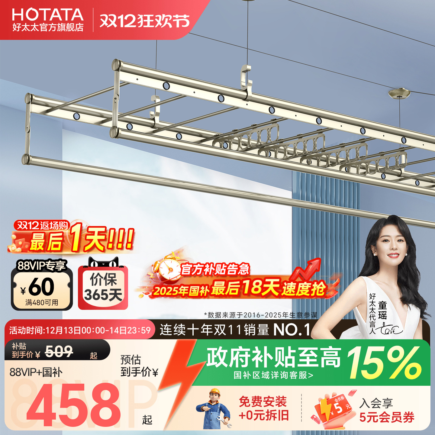 收纳整理 【政府补贴】好太太升降晾衣架家用手动晒衣架阳台伸缩自动晾衣杆