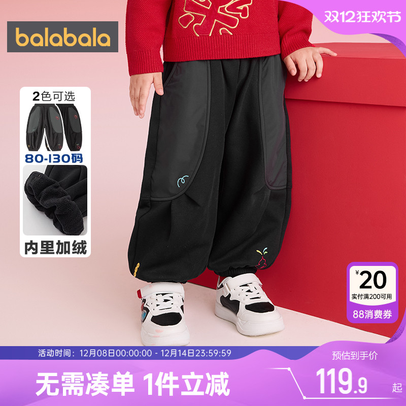 童装/婴儿装/亲子装 巴拉巴拉儿童加绒运动裤男童女童黑色裤子冬季新款童装宝宝休闲裤