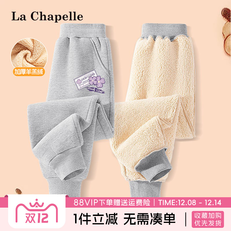 童装/婴儿装/亲子装 拉夏贝尔女童加绒裤子儿童加厚一体绒运动裤女孩冬季2025新款卫裤