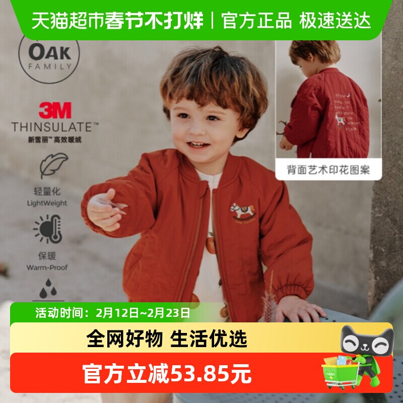 童装/婴儿装/亲子装 Oak Family冬季宝宝夹棉外套儿童防水夹克男女童棒球服