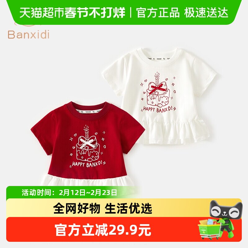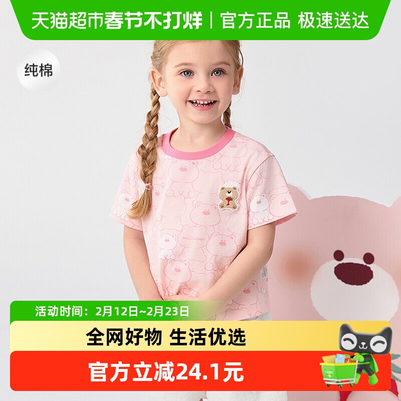 童装/婴儿装/亲子装 巴拉巴拉童装宝宝短袖女童t恤儿童上衣纯棉2025新款夏装可爱小熊