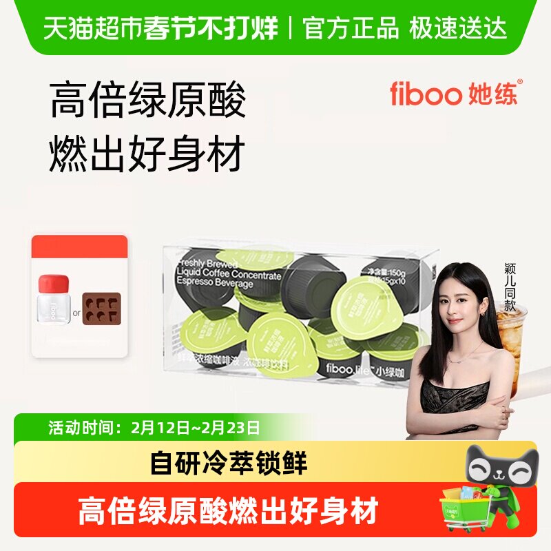 咖啡/麦片/冲饮 fiboo她练绿萃咖黑咖啡浓缩咖啡液美式速溶0糖0脂高倍绿原酸燃健