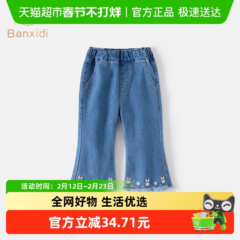 童装/婴儿装/亲子装 班喜迪女童裤子春秋款2026新款女宝宝休闲长裤春装儿童牛仔喇叭裤