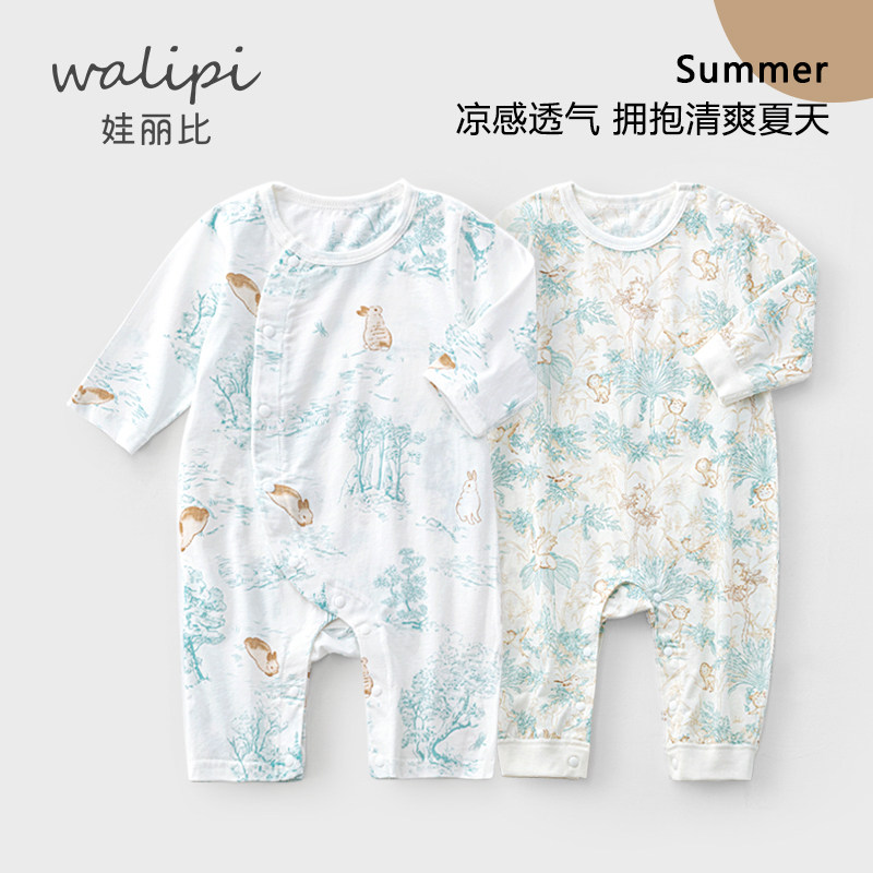 童装/婴儿装/亲子装 婴儿连体衣长袖夏季薄款爬服新生儿空调服空宝宝纯棉哈衣可爱兔子