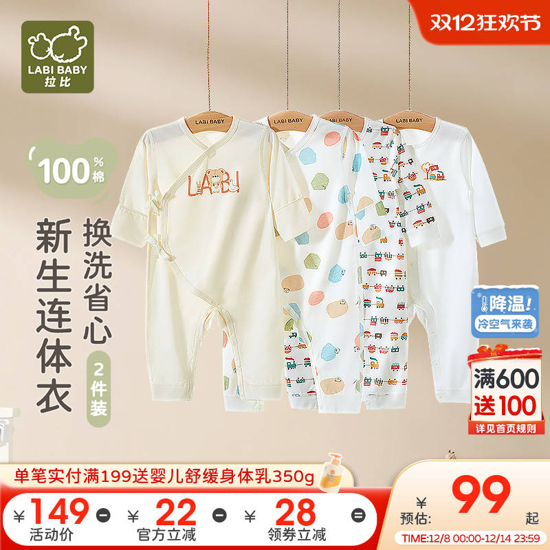 童装/婴儿装/亲子装 拉比婴儿连体衣宝宝爬爬服新生儿包屁衣四季绑带哈衣和尚服2件装