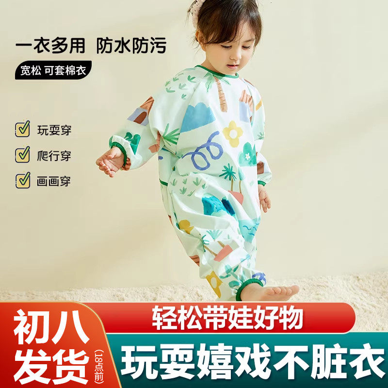 童装/婴儿装/亲子装 宝宝爬行服防脏爬爬服婴儿连体罩衣一体式户外儿童全身罩衣爬爬衣