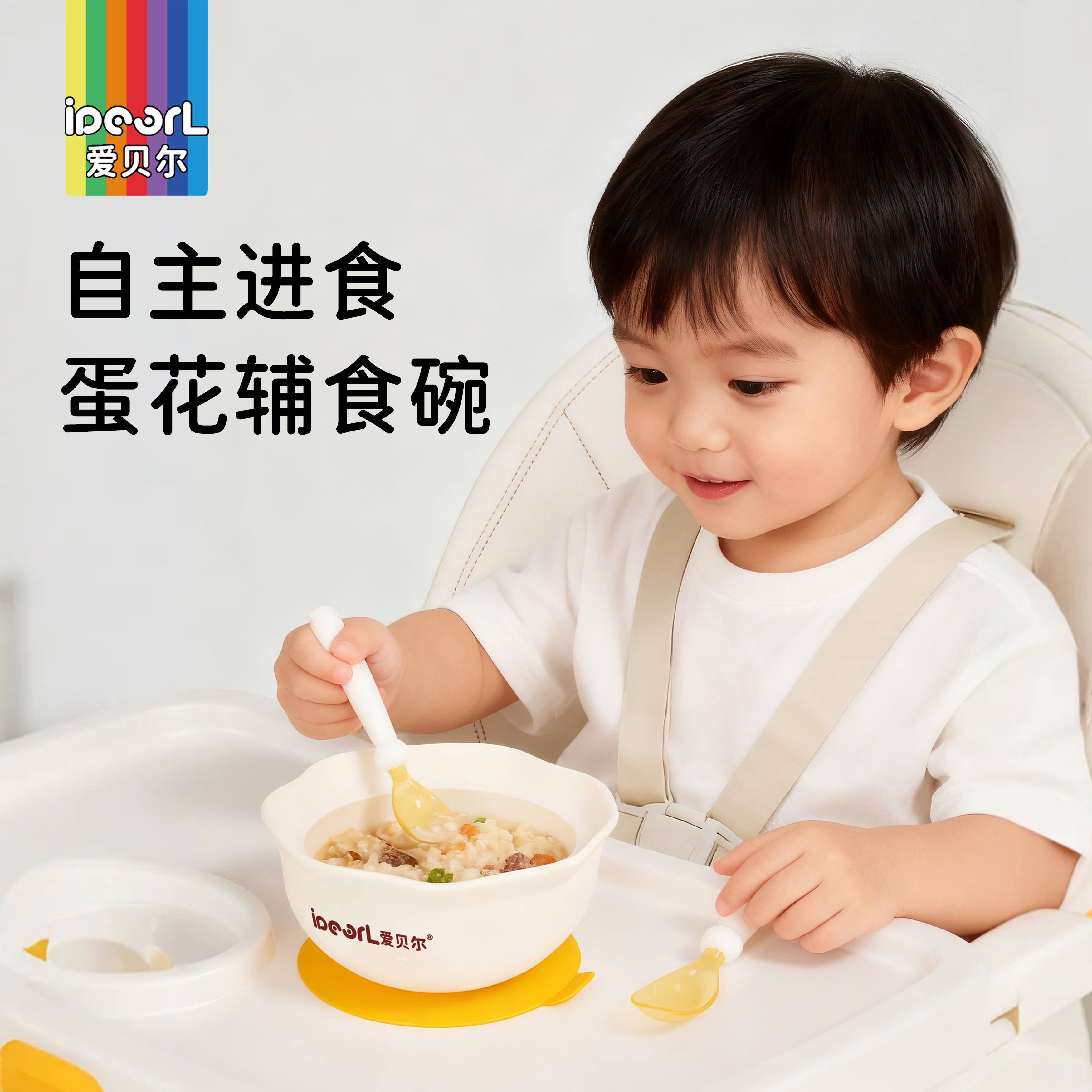 婴童用品 爱贝尔辅食碗婴幼儿专用宝宝训练学吃饭硅胶吸盘碗儿童餐具蛋花碗