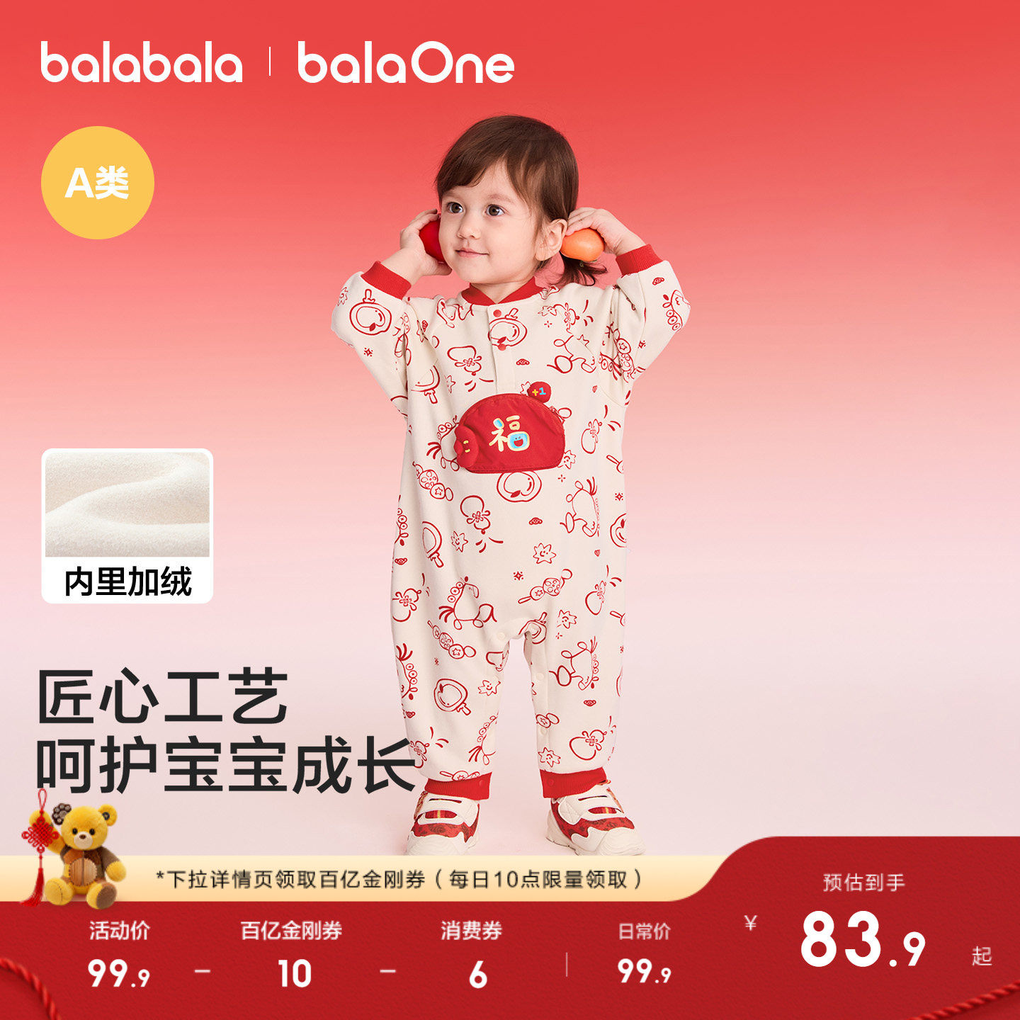 童装/婴儿装/亲子装 巴拉巴拉童装宝宝连体衣新生婴儿男衣服女2026新款拜年红色拜年服