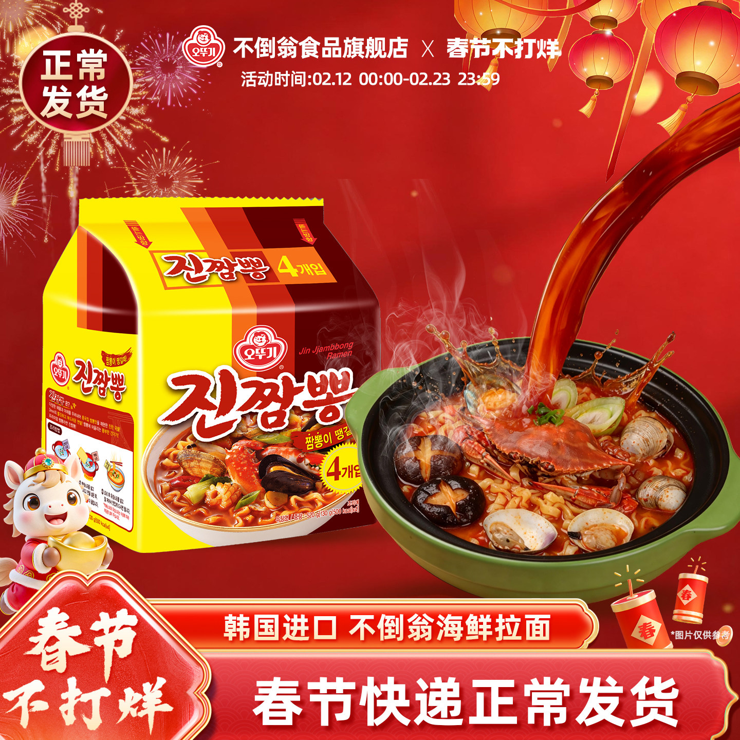 粮油调味/速食/干货/烘焙 不倒翁韩国进口真海鲜拉面劲道汤面夜宵美食懒人速食拉面方便面