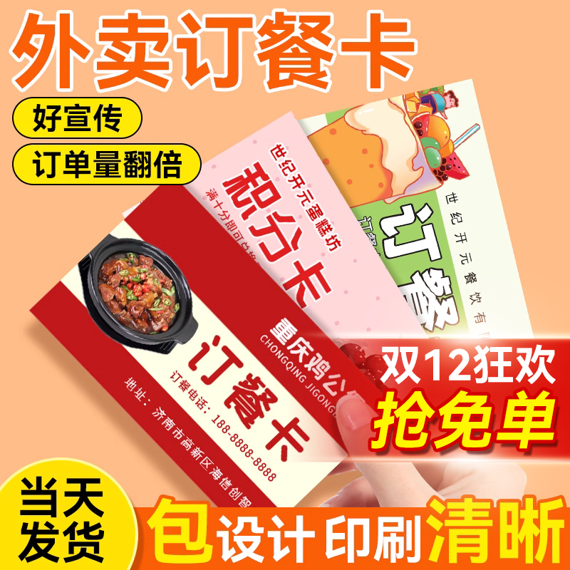 文具电教/文化用品/商务用品 外卖卡片名片定制订餐卡名片设计奶茶活动优惠卡券代金券送餐卡小卡片广告饭店快餐小吃定制打印订做订制餐饮