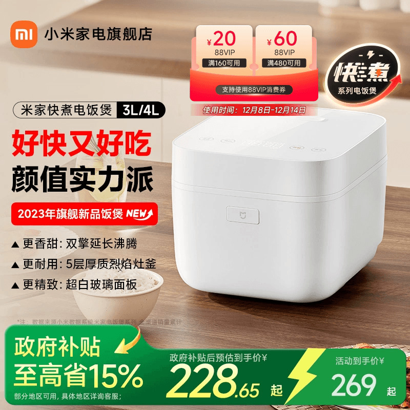 厨房电器 【政府补贴15%】米家快煮电饭煲3L4L家用多功能电饭锅煮饭3-5人