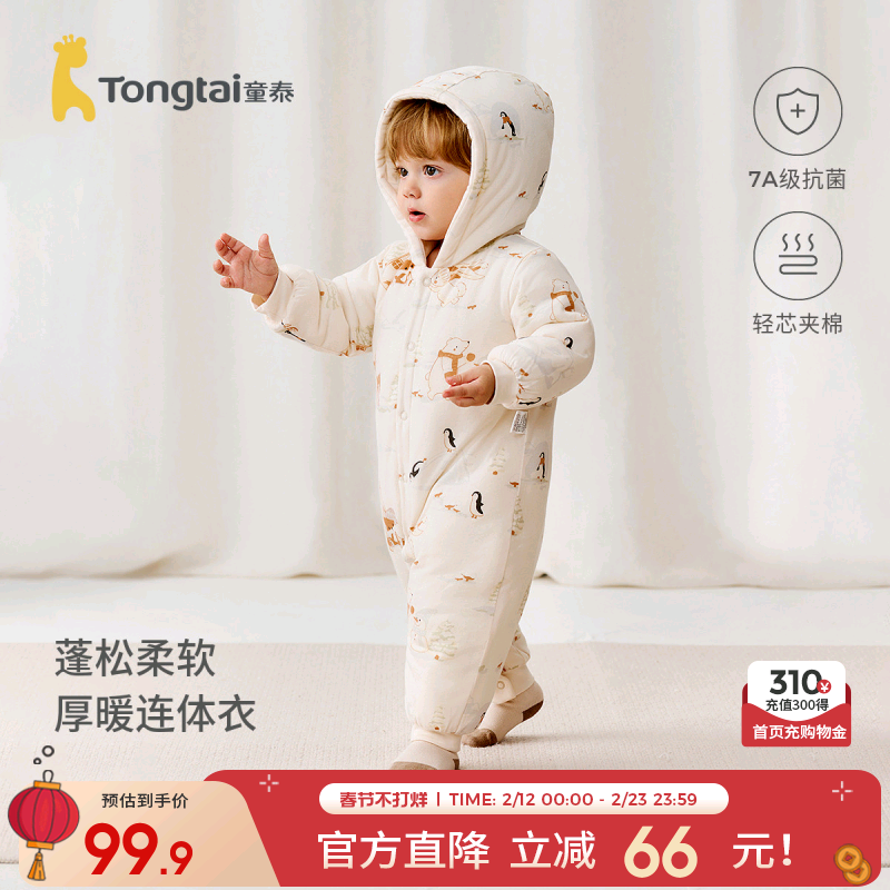 童装/婴儿装/亲子装 童泰婴儿连体衣冬季纯棉夹棉宝宝衣服儿童连帽哈衣爬服外出抱衣