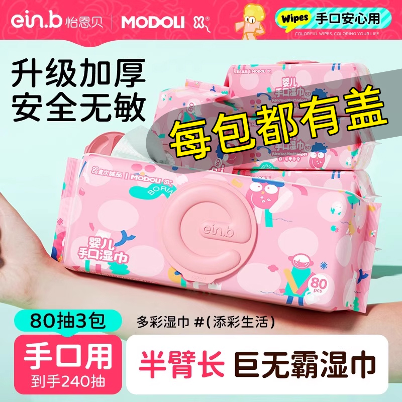 婴童用品 加厚加大怡恩贝湿巾80抽3包5包婴儿手口屁专用婴幼儿新生擦湿纸巾