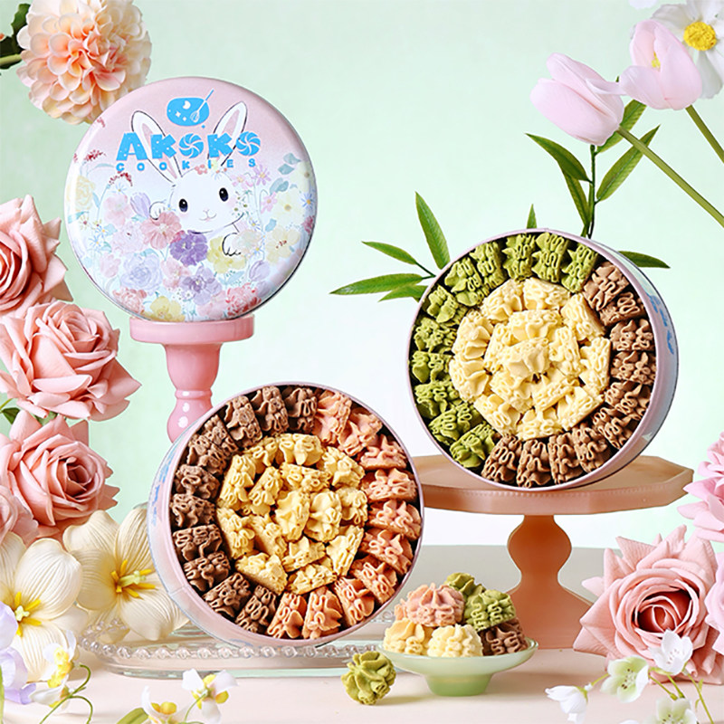 零食/坚果/特产 AKOKO小花黄油曲奇饼干560g休闲零食糕点女生闺蜜生日送礼物甜品