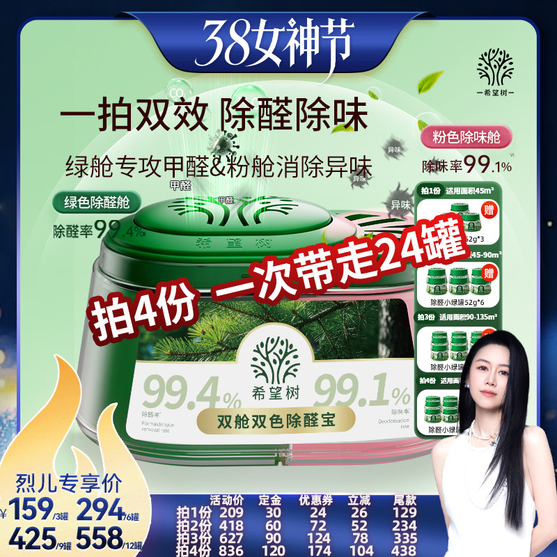 洗护清洁剂/卫生巾/纸/香薰 【先加购!24号烈儿0元付定】希望树双舱双色除醛宝除甲醛凝胶3罐
