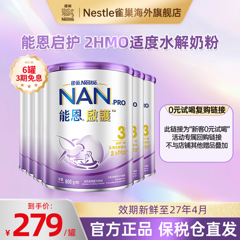 婴童奶粉 【新客0元试喝复购专属】雀巢能恩启护适度水解奶粉3段800g*6罐