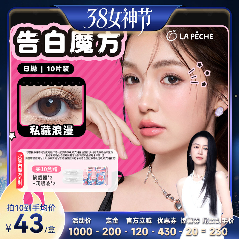 隐形眼镜/护理液 【先加购 !24号烈儿0元付定】拉拜诗告白魔方美瞳日抛10片隐形