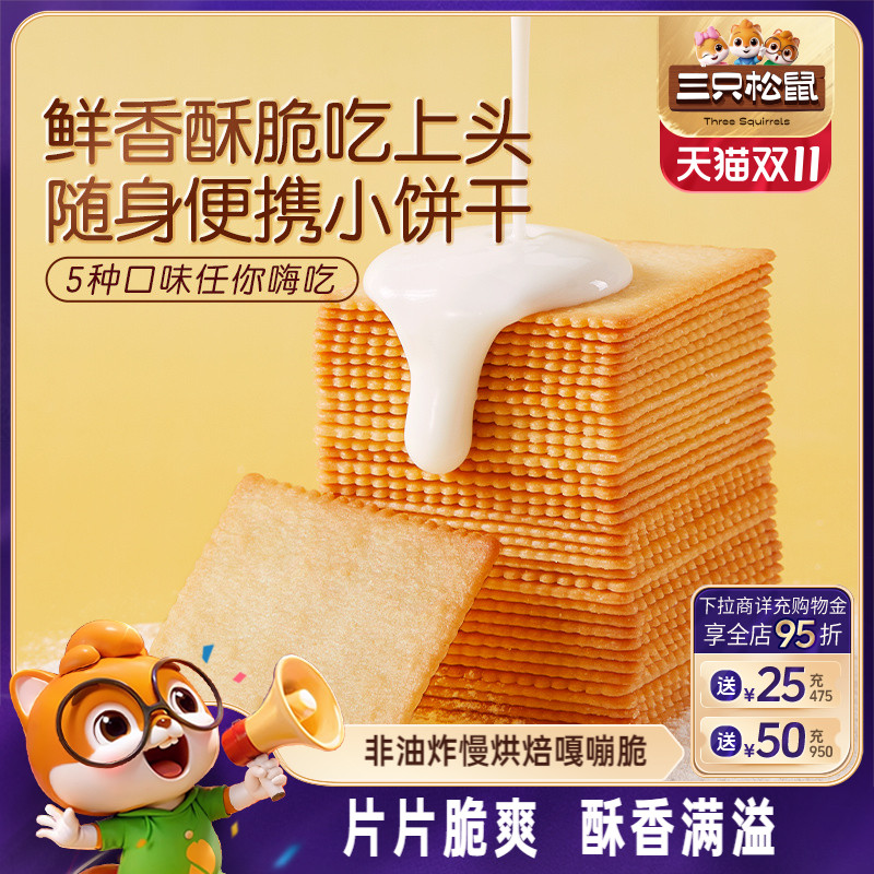 零食/坚果/特产 三只松鼠薄脆饼干300g酥脆饼干办公室早餐日常解馋休闲好吃零食